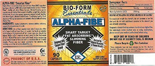 -. Binding : Health and Beauty -. Brand : Alpha-Fibe -. EAN : 0851514000907 -. Feature : Original & Only 100% Pure Alpha-Cyclodextrin (ACD) "Slimming Fiber" / Targets & Absorbs 9 times its weight in fat like no other fiber / Raises the key weight loss hormone that breaks down fat / Removes up to 60% of unwanted fat from the foods you eat / Backed by solid Clinical Research and US Government Study -. IsAdultProduct : 0 -. Label : Bio-Form Essentials -. LegalDisclaimer : Bio-Form Essentials products are not intended to diagnose, treat, cure, or prevent any disease. -. Manufacturer : Bio-Form Essentials -. PackageQuantity : 1 -. ProductGroup : Health and Beauty -. ProductTypeName : HEALTH_PERSONAL_CARE -. Publisher : Bio-Form Essentials -. Studio : Bio-Form Essentials -. Title : Alpha-Fibe Fat Absorbing Smart Target Slimming Fiber (90 Fast-Acting Capsules) The Original and Only 100% Pure Alpha-Cyclodextrin (ACD)Weight Loss Fiber by Bio-Form Essentials -. UPC : 851514000907