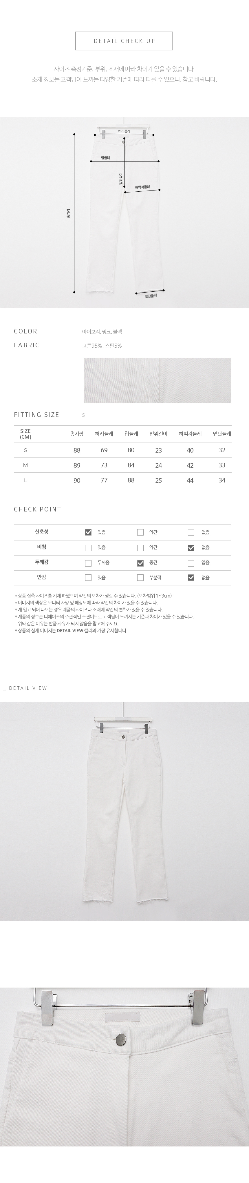 한겨울 제외하고 매 시즌 입기 좋은 딱 좋은 두께감에 코튼 95%, 스판5% 혼방으로 텐션감 최고의 부츠컷 팬츠예요. 밑단은 자연스러운 컷팅으로 가볍게 입기 좋아 편안한 데일리룩의 상의와 코디하기 좋은 편안한 팬츠랍니다^^ 산뜻한 길이감과 라이트 한 질감의 소재로 자주 손이 가는 데일리 팬츠예요! 색상은 아이보리, 핑크, 블랙 사이즈는 S,M,L ▼ 관련상품 : 서브 코튼 내추럴핏 셔츠벨소매 코튼 셔츠