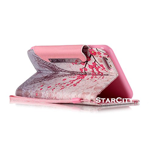 iPhone 6 Case, StarCity Premium PU Leather Folio Flip Cover Case with Card Slots & Stand [Magnetic Closure] for iPhone 6S & iPhone 6 (Paris Flower)