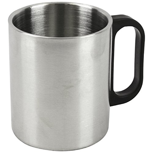 -. Feature : Capacity: 300ml. Perfect for travelling and camping / Strong and durable design. Double walled insulation / Plastic handle / Keeps beverages at a steady temperature, cold or hot / Material: high grade 18/8 Stainless Steel. Weight: 150g