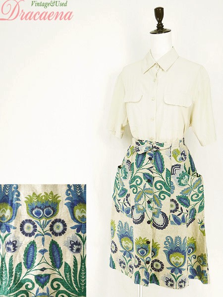 Ladies ブランド- カラーベージュ・緑 メール便不可 コンディション★★★ 素材リネンだと思われます 表記サイズ記載なし 実寸サイズ 着丈 66 cm ウエスト フリー (平置き 35 cm) ※ウエスト・ヒップ以外は平置き採寸【code】#c