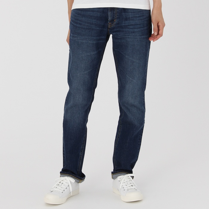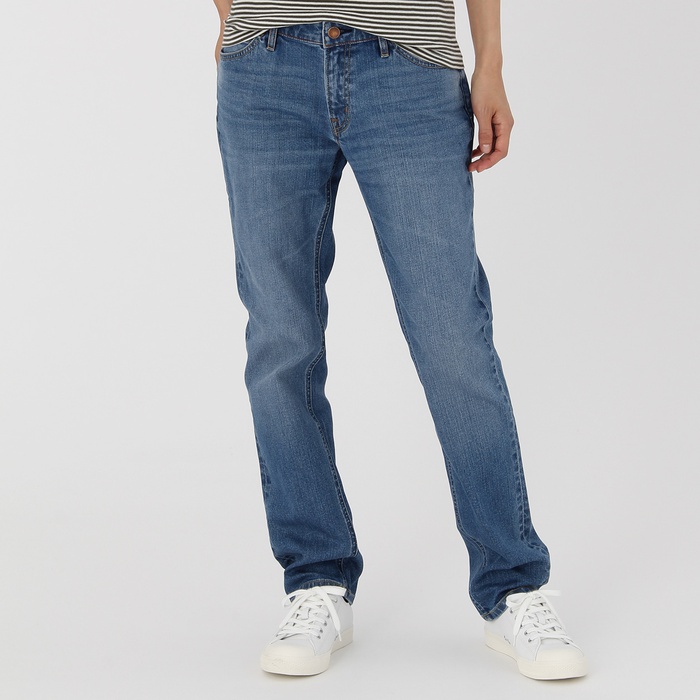 Muji 【넷 한정】오거닉 코튼 스트레치 데님 보이 피트 풀 길이 부인21(53.5cm)블루NEW