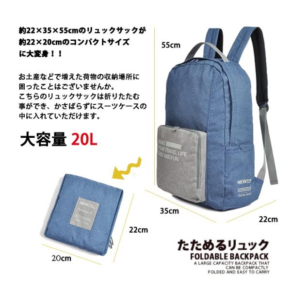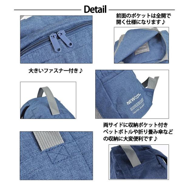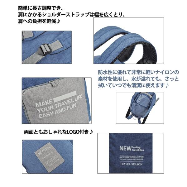 旅行に便利なキャリーオンスタイルのバッグ!!キャリーバッグのアーム部分に装着が可能!!旅行や帰省でリュックが重たくなってしまう時などキャリーに取り付けて転がせるので断然楽ちん荷物が多いときも他の荷物に労力を分散できるのでかなり便利な機能です!!A4サイズのノートPCもスッポリ入ります!コンパクトに折りたたみ可能!小さく折り畳んで持ち運びができるので予備用バッグとして、キャリーなどに入れておけばいざ荷物が増えたときも即対応ができます容量:20L重量:約350g生産国:中国カラー:ブラックブルーグレー※商品カラーはお使いのモニターによって若干異なる場合がございます※海外製造品のため、軽微な傷や汚れ等ある場合がございます。