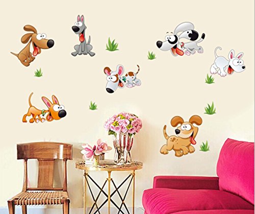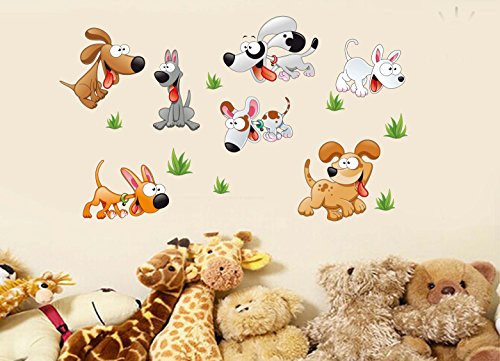 Happy Dogz Baby Nursery Animal Wall Decals for Kids Rooms, Baby, Boys & Girls Bedroom - Peel & Stick,Removable Vinyl Wall Stickers - Lovely