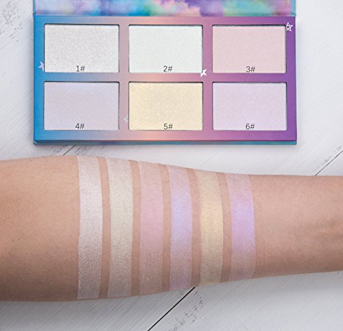 6 different colors highlighter powder kit, suitable for All Skin Colors. Made by safe material, would not irritate your skin.
