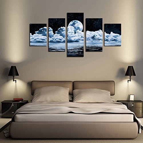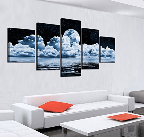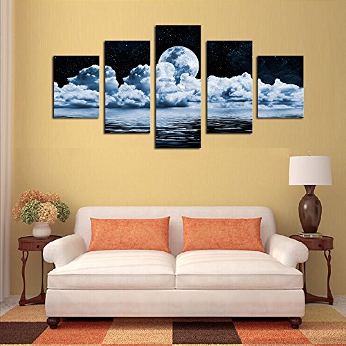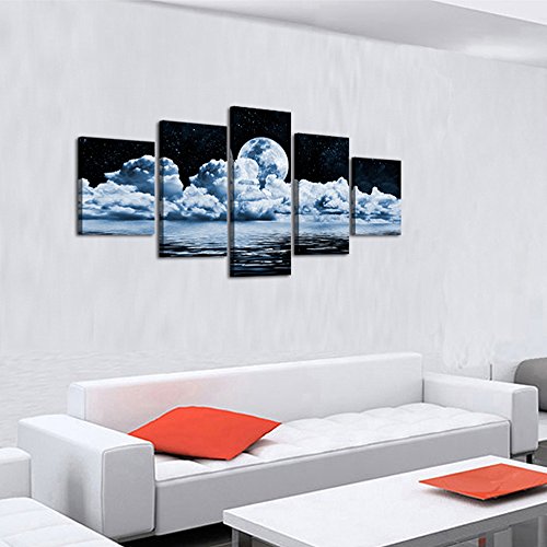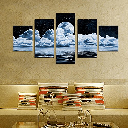 -. Binding : Kitchen -. Brand : DZL Art -. Feature : High Definition Giclee modern art work, picture photo P.R.Inting on high quality canvas. A great gift idea for your relatives and friends. / Stretched and Framed art P.R.Inting. Each panel has a black hook already mounted on the wooden bar for easy hanging out of box. / Non-trace nail provided, it nail tiny holes, keep your wall clean and tidy. / A perfect choice for wall decoration and home decorations. -. IsAutographed : 0 -. Label : DZL Art -. Manufacturer : DZL Art -. PackageQuantity : 5 -. ProductGroup : Home -. ProductTypeName : HOME -. Publisher : DZL Art -. Studio : DZL Art -. Title : DZL Art S133 Landscape Abstract Canvas P.R.Int Painting Modern Canvas Wall Art for Home Decoration,Framed- 5 Panels Sea White Partly cloudy Moon in the Night Painting Wall Art Picture P.R.Int on Canvas