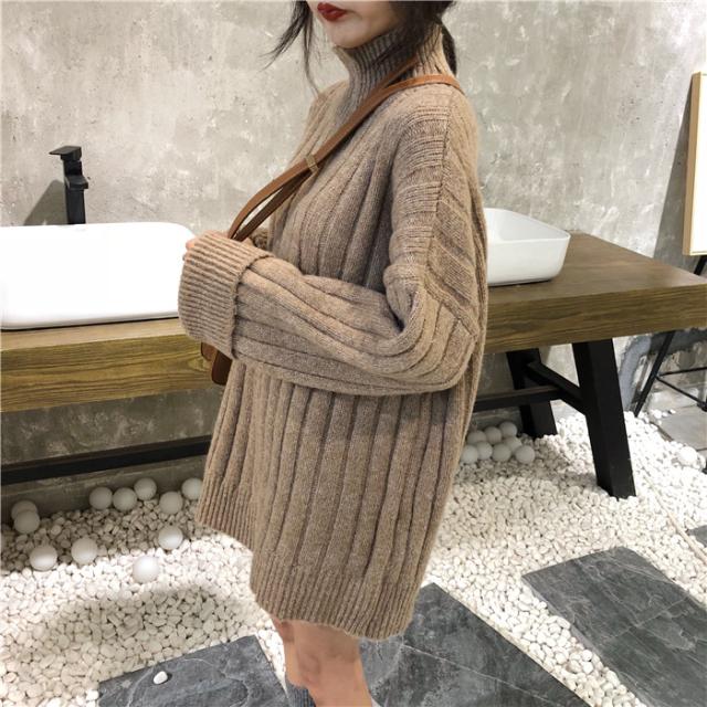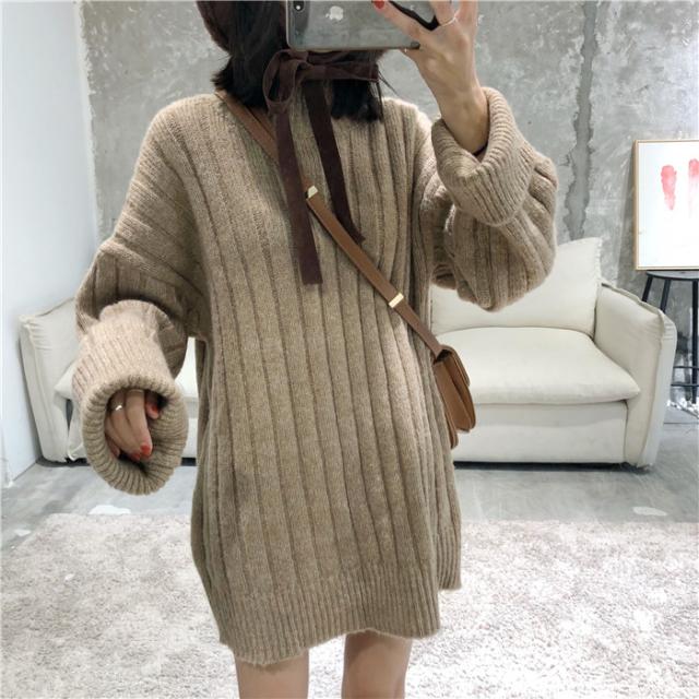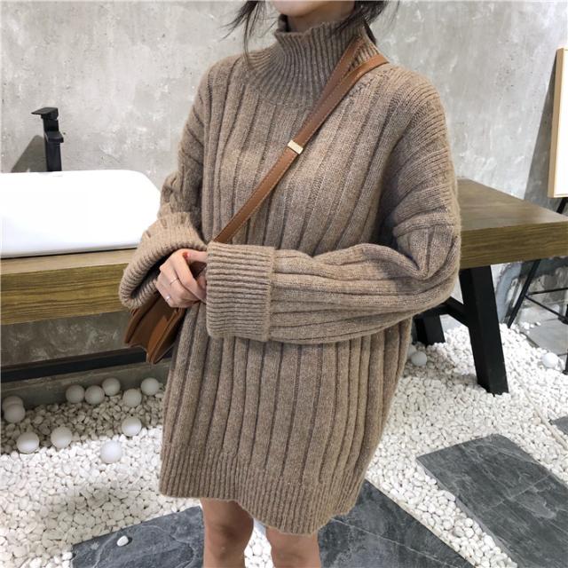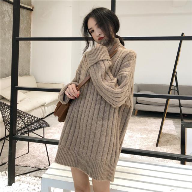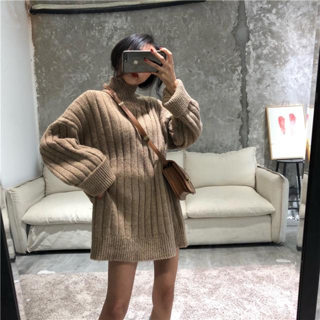 落ち着いた色合いが秋冬コーデにぴったりなニットチュニックワンピースです。