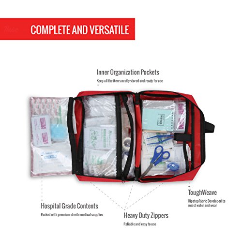 -. Feature : CONTENTS - Packed with 275 useful and valuable hospital grade medical supplies - See the product images and the product description below for a full list of contents. We are confident that you will find that there are more and higher quality contents in our kits than any other on the market! / DESIGN - Crafted from durable rip-stop nylon and vinyl fabric. Lightweight, compact and yet still holds everything you need for life's unexpected events. Extensive inner pockets keep the contents stored neatly and safely between uses. Reflective and red cross logo for added safety. This first aid kit is 12.0 inches long X 8.5 inches wide X 4.0 inches thick. When opened fully the kit spreads to 22.0 inches long. It weighs approximately 1.1 lbs / VERSATILE - Great emergency kit for most daily use or adventures, including: homes, offices, camping, cars, restaurants, autos, sports, boats, road trips, workplace and schools. / BE PREPARED - This product will allow you to be ready for unexpected basic daily misshapes and even wilderness combat field survival trauma situations. We've seen our kits used in a variety of situations, including: month long sea kayak trips, minor pet accidents and everyday baby misadventures. Stash this kit in your backpack, vehicle glove compartment or medical cabinet for quick and easy solutions to emergencies. / TRUSTED - Complies with American ANSI and OSHA professional standards for most environments (please check our contents with your specific regulations) Manufactured in a modern sterile FDA registered facility and sold by FDA registered company that has been doing business for 40 years. Purchasing a Thrive Brand First Aid Kit ensures a safe, sterile and regulated product.