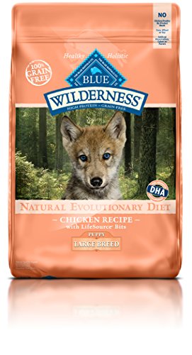 Blue Buffalo Wilderness Chicken Dry Puppy Food Inspired by the diet of wolves, true omnivores whose endurance is legendary, BLUE Wilderness Puppy is a grain-free, protein-rich food that contains more of the delicious chicken your puppy loves. Formulated specifically to help meet the important needs of growing puppies, Blue Buffalo Wilderness Chicken Dry Puppy Food benefits brain and eye development. DHA, an important fatty acid found in mother's milk, supports cognitive development and retinal function. High-quality protein from delicious deboned chicken, plus chicken meal, turkey meal and egg helps support healthy muscle growth and build strong muscles. An optimal blend of calcium, phosphorus and essential vitamins helps maintain healthy bone growth. Unique "small-bite" kibble is the perfect size for smaller jaws and is shaped to promote tartar removal. The optimal balance of Omega 3 & 6 fatty acids helps promote a shiny coat and healthy skin. Essential vitamins, chelated minerals and important antioxidants help support the immune system.Feature