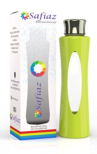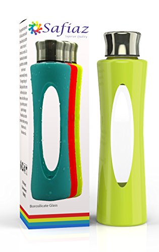 - SUPERIOR QUALITY – Safiaz, Glass Bottles, are 20 fl oz capacity super lightweight, high quality traditionally handmade elegant designs with stainless steel cap. The 100% food grade glass and silicone sleeve is non-slip and leak proof that has been enhanced for your comfort and luxurious experience. Perfect for your beverages.