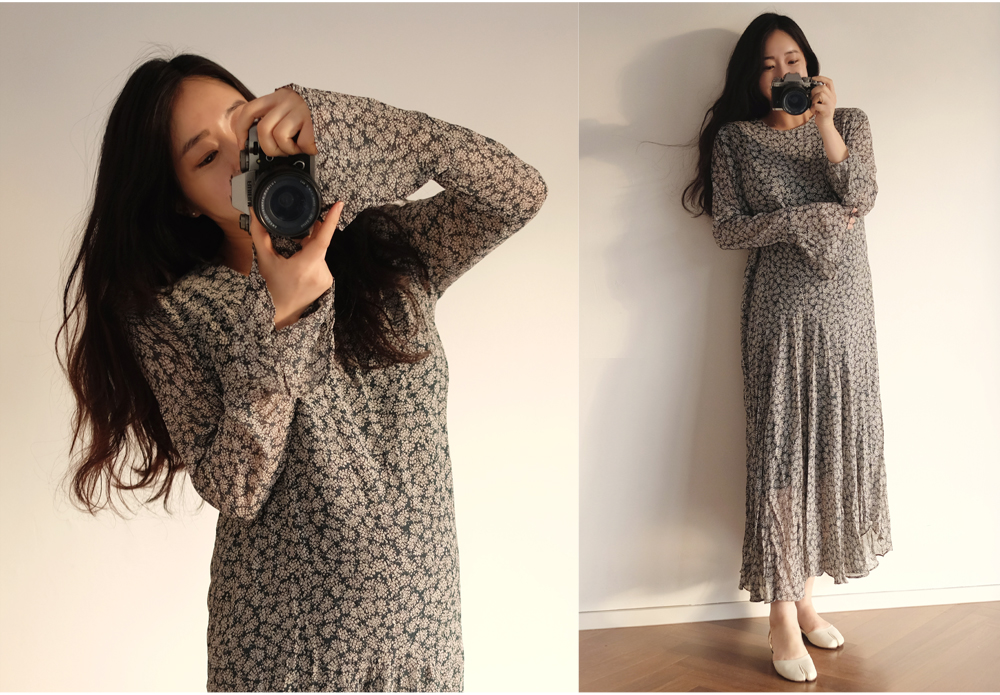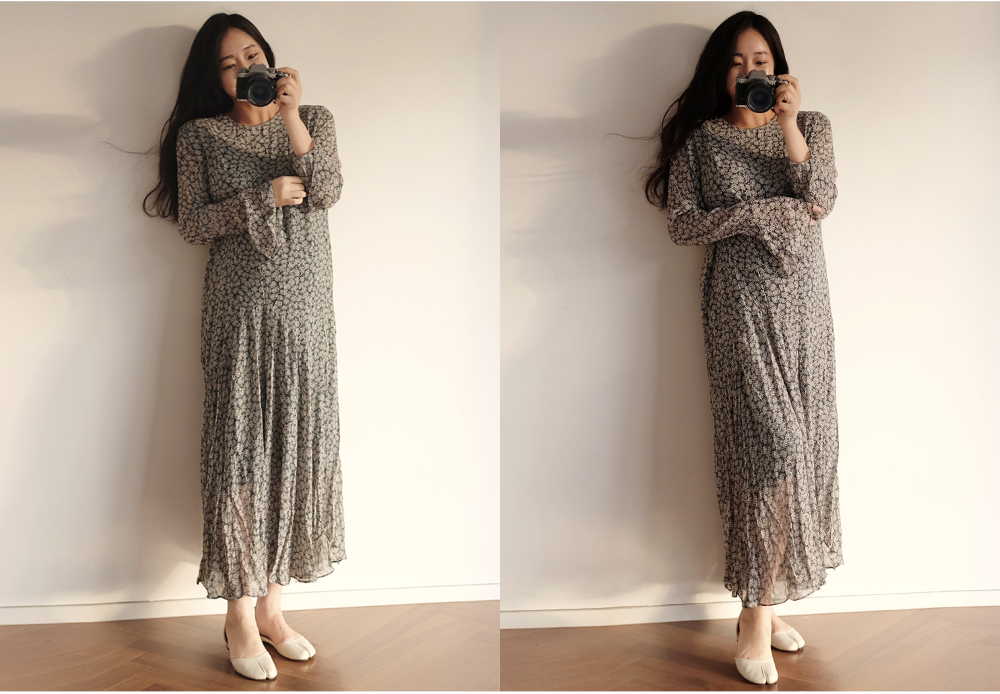 여리한 실루엣이 연출되어 착용 시 높은 만족도를 주는 롱 원피스:)