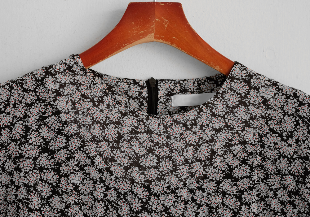 안정감있는 라운드넥이구요, 소매에는 나팔디테일로 포인트를 주어,