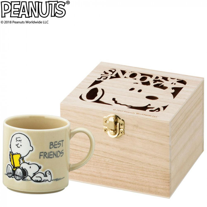 チャーリーブラウンとスヌーピーのかわいいマグ。木箱に入っているので、ギフトにもピッタリです。
