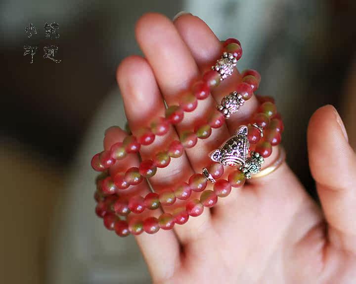 Specifications: Bracelet fold about 28cm (including pendants), watermelon crystal diameter of about 6mm, about the diameter of a small elephant 1.8X1.3cm, 2-3 ring can be worn around the hand