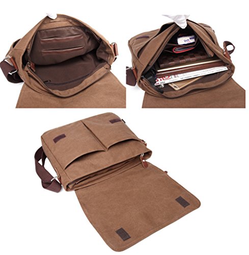 -. Feature : Size: 34*30*10cm L*H*W. Weight:about 0.8kg / Made of high quality canvas,classic and fashion. / It is a perfect gift for men's Birthday, Thanksgiving, Christmas, anniversary. / Vintage and classic style, multi-function and practical design, adjustable shoulder strap. / Lots of pockets, organzined and convenient.