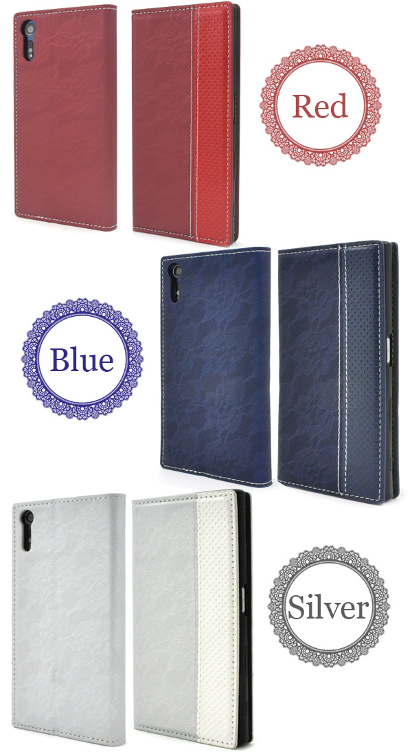 | Xperia XZ (SO-01J/SOV34/601SO)用のレザー地の上に 薄くレース柄がプリントされた上品なケースです。 内側はスウェード調になっており手触りも抜群! 便利なカードポケットつきです! 衝撃やキズなどからXperia XZ (SO-01J/SOV34/601SO)を守るのはもちろん、 カメラ、イヤホンや各種ボタンなどをケースに入れたまま操作することもできます。 色はレッド、ブルー、シルバー、ピンク、ホワイト、パープル、ブラウン、ブラック、グレーの9色展開です。 ※Xperia XZ (SO-01J/SOV34/601SO)は付属しません。 ※ライセンス商品ではありません。