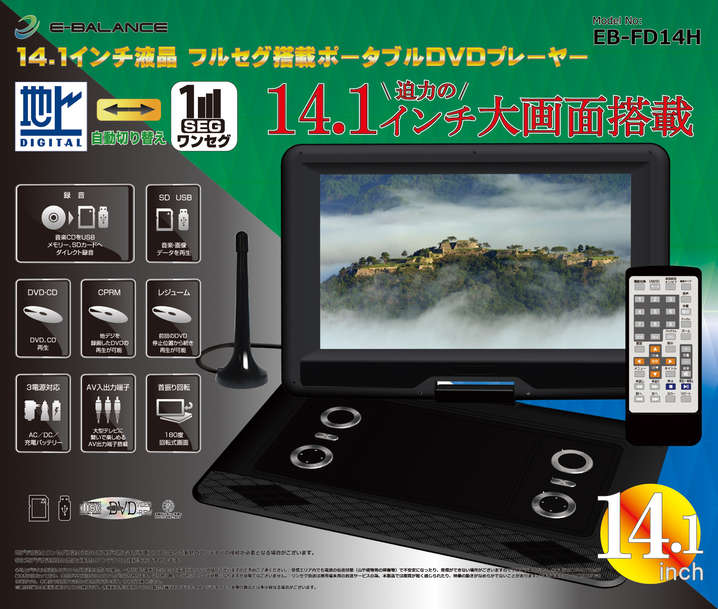 ●付属品 : ACアダプター、車載用DCアダプター、イヤホン、簡易アンテナ、AVケーブル、リモコン、miniB-CASカード、鉄板プレートクイックスタートガイド、取扱説明書、保証書
