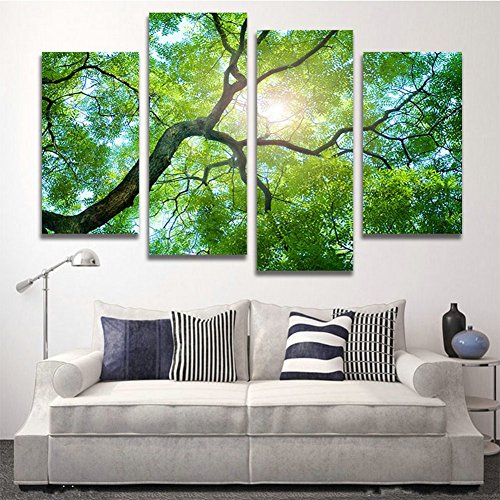 -. Title : H.COZY 4 Panels Green Tree Painting Canvas Wall Art Picture Home Decoration Living Room Canvas P.R.Int Modern Painting (No Frame) Unframed FCR36 48 inch x28 inch