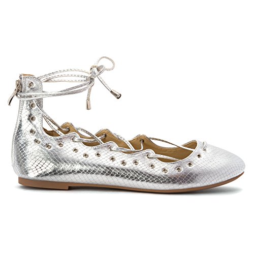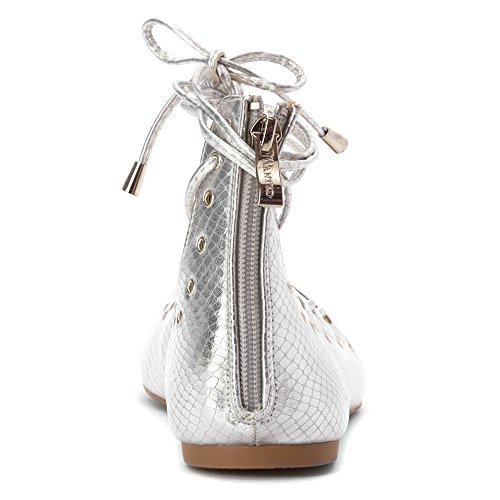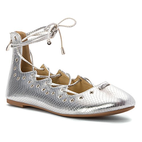 Product DescriptionLace up ballerina flat with ankle high and grommet detail.0