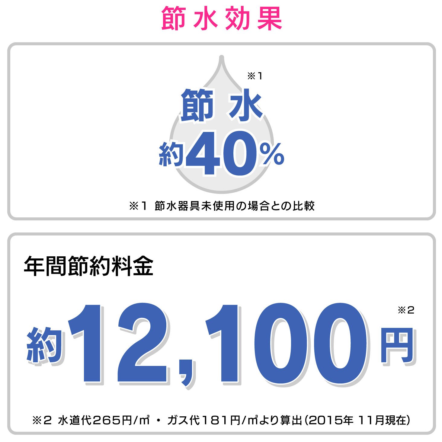 Approximately 40% of the water saving effect (Gaona ratio) compared with the rectifier, saving without being conscious of water saving in everyday life.