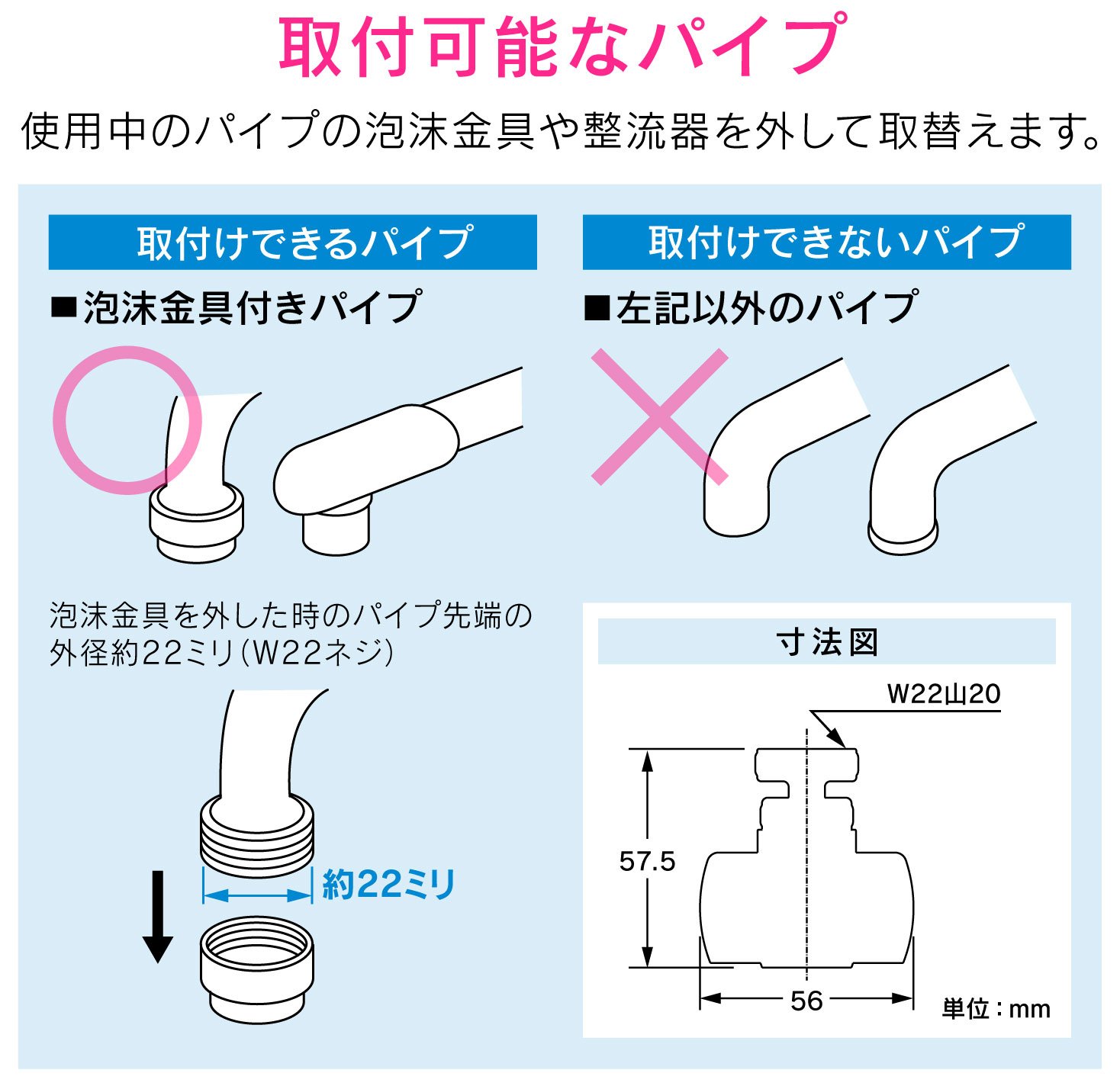Switchable to two types of water currents: foam and shower.