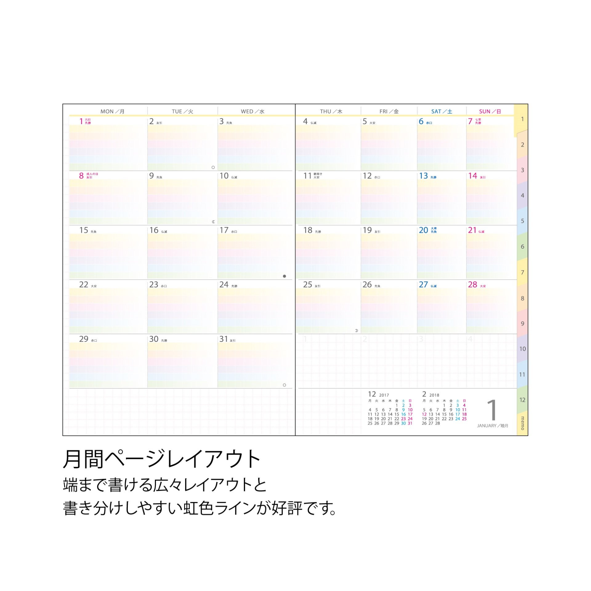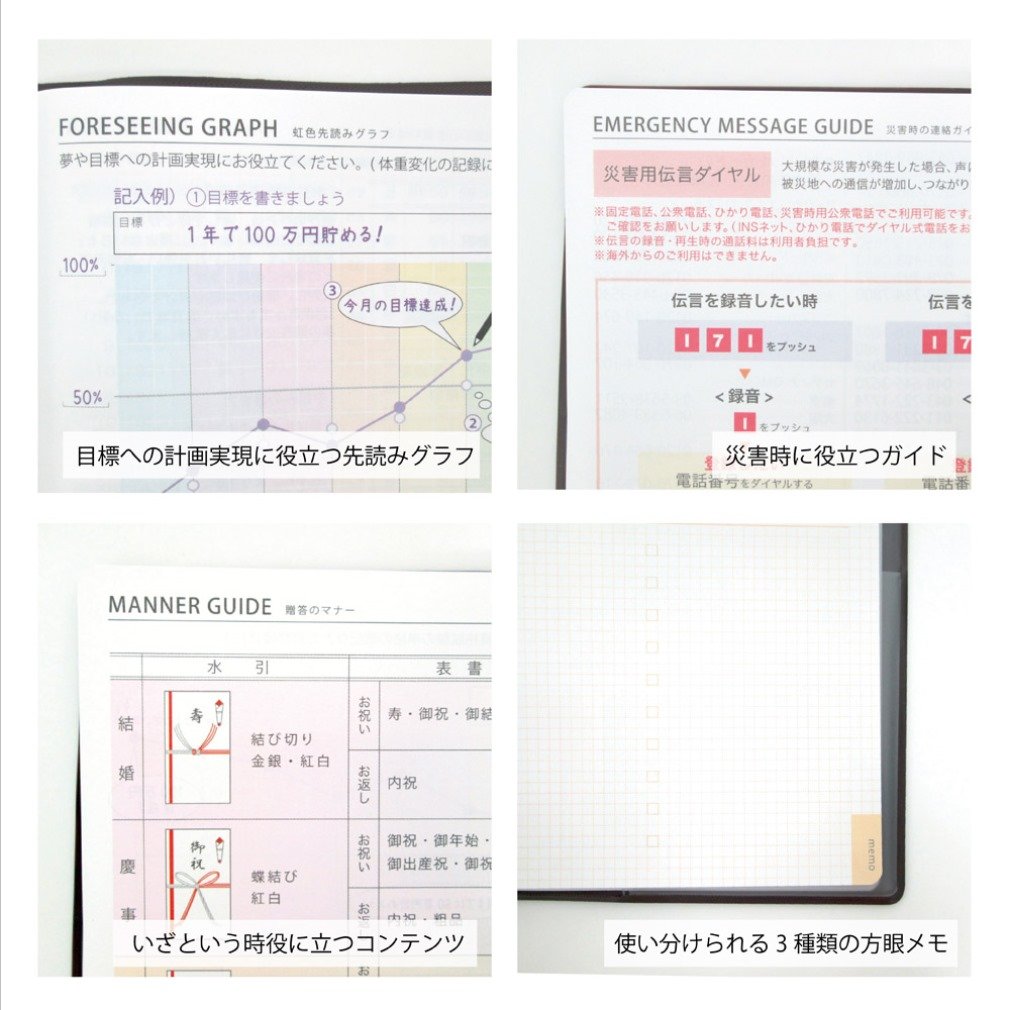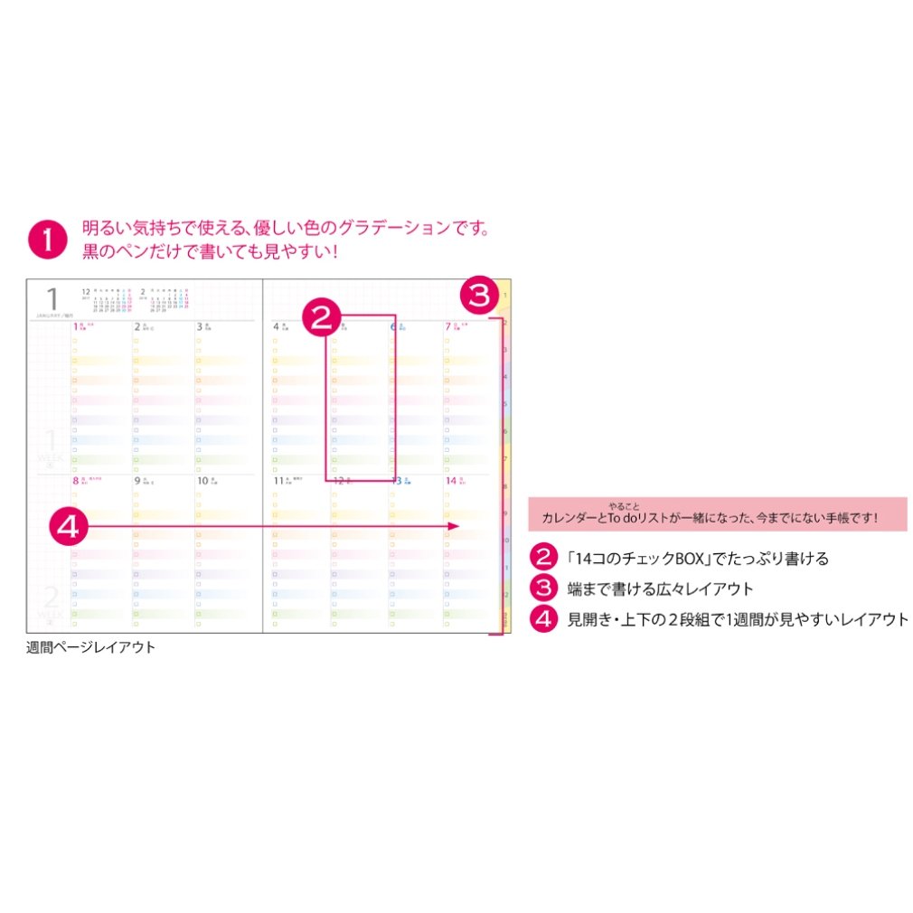 · Monthly page layout features gradation of gentle color that can be used with a bright feeling, even if you write with only a black pen, it is easy to see