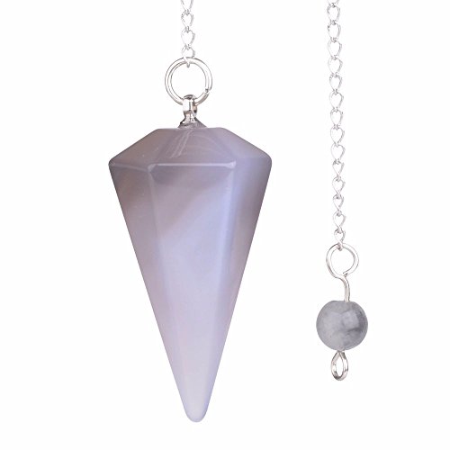 Natural Gray Agate Gemstone Rock Crystal Hexagonal Pointed Reiki Chakra Pendant Pendulum