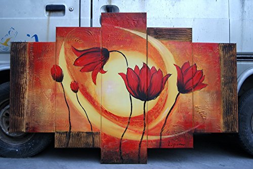 - Title : Modern Hand Painted Canvas painting Art Work for Wall Decor Home Decoration "Poppies In Warm Colours " 5-Piece Gallery-Wrapped Flower Oil Painting On Canvas
