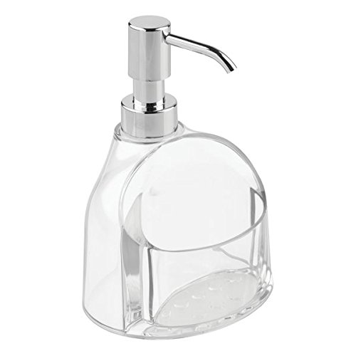 mDesign Kitchen Soap Dispenser Sponge and Scrubby Caddy Organizer - Clear/Chrome