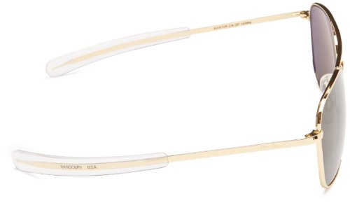Studio : Randolph Publisher : Randolph Binding : Eyewear Product Description Metal frames and signature bayonet temples designed for military pilots. Mineral crown glass lenses provide 98%-100% UV protection. Brand logo at upper left lens. Adjustable silicon nose pads. Protective case included. Made in the 0