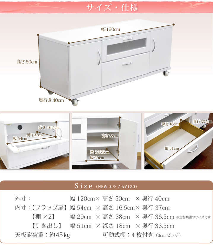 ●外寸幅120x奥行40x高さ50cm