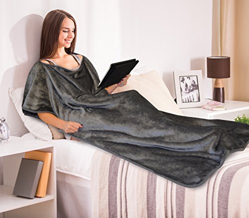 - PONCHO STYLE - Wearable blanket, covers shoulders, will not slip down.