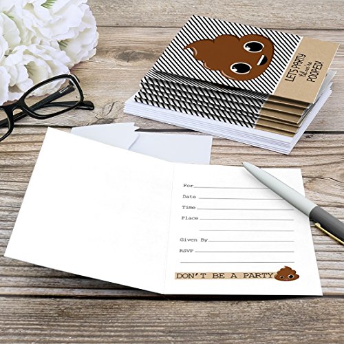 Party 'Til You're Pooped Fill-In the Blank Invitation Set INCLUDES 8 poop emoji party invitations and premium white envelopes. Party 'Til You're Poop fill-in invitations are perfect for a party of any age.