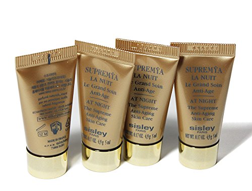 -. Binding : Misc. -. Brand : Sisley -. EAN : 3605540837580 -. Feature : Every night, Supremÿa counterbalances damage sustained during the day and prepares the skin to face the following day. / In 2 months, it repairs past damage. Its "deep down" rejuvenating action is visible on the outside / Night after night, it optimises skin's future: genetically programmed skin aging is pushed back, DNA is protected / Item ships from Bangkok, Thailand -. MPN : AB-92510 -. PackageQuantity : 1 -. PartNumber : AB-92510 -. ProductGroup : Beauty -. ProductTypeName : BEAUTY -. Title : SISLEY Supremya La Nuit Night Anti Aging Travel size .17oz (x 4 Tubes)