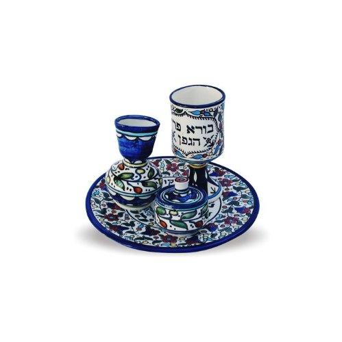 - This 22 centimeter four piece Havdallah set has been painted in a blue mosaic.