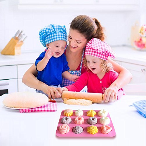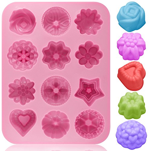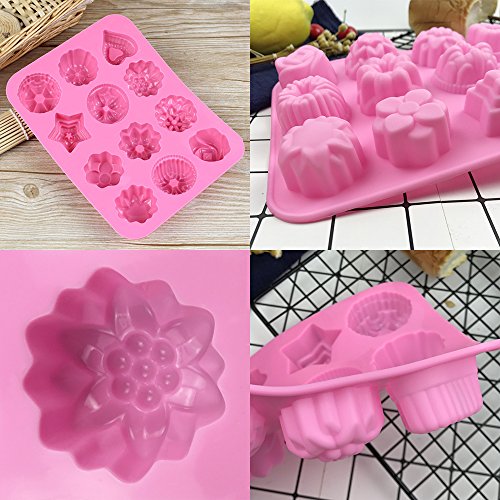 3 Pcs Silicone Chocolate Cake Candy Molds, DanziX Reusable Non-Stick Maker Trays for Biscuits Chocolate, Jelly, Pudding, Dessert and Soap, 12-Cavity with Flower, Heart Shape - Green, Pink