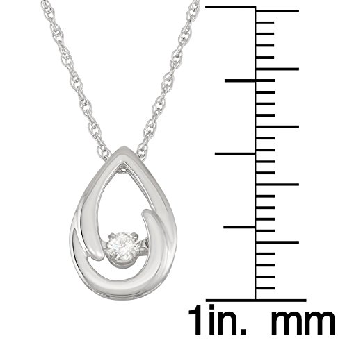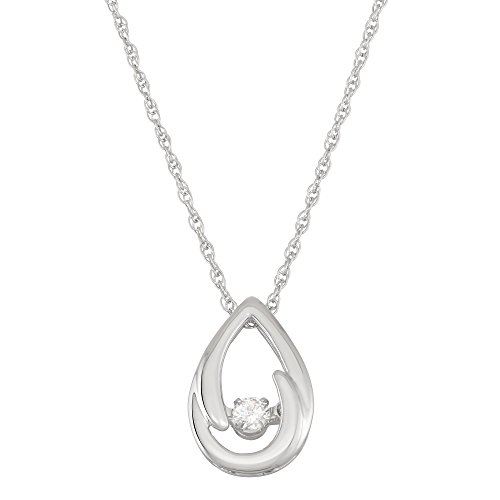 This beautiful Brilliance in Motion Tear Drop Pendant has a unique setting that allows for the diamond to move and sparkle with every movement. It is set in Sterling Silver with 1/10 Ctw. Diamonds (I1-I2 Quality). Comes with an 18" Rollo Chain with Lobster Claw Clasp.Feature