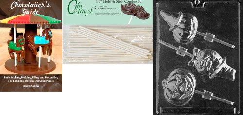 Cybrtrayd 'Assorted Pumpkin Lollies' Halloween Chocolate Candy Mold with 50 4.5-Inch Lollipop Sticks and Chocolatier's Guide
