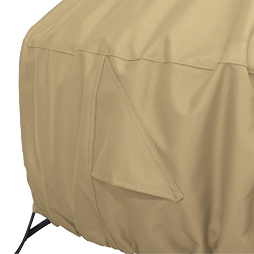 OUTDOOR FIRE BOWL COVER: Classic Accessories' unrivaled StayOn elastic loops, fit over Fire Pit's legs to keep the cover tightly secure while air vents reduce inside condensation and wind lofting