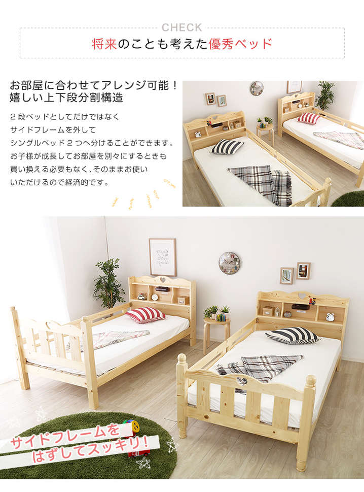 ●上段・下段が分割できる構造でシングルベッド2つにも変更可能!
