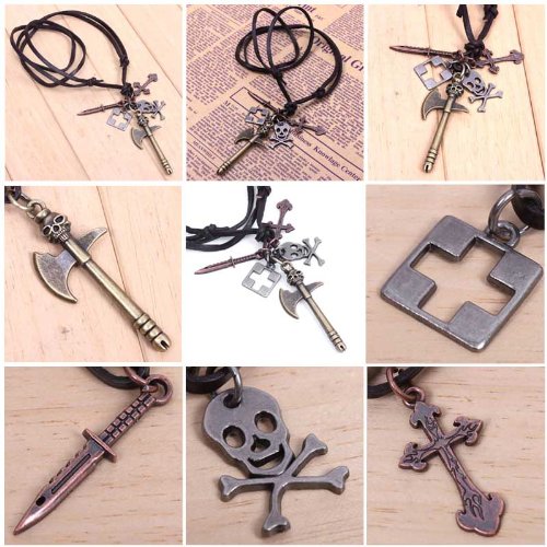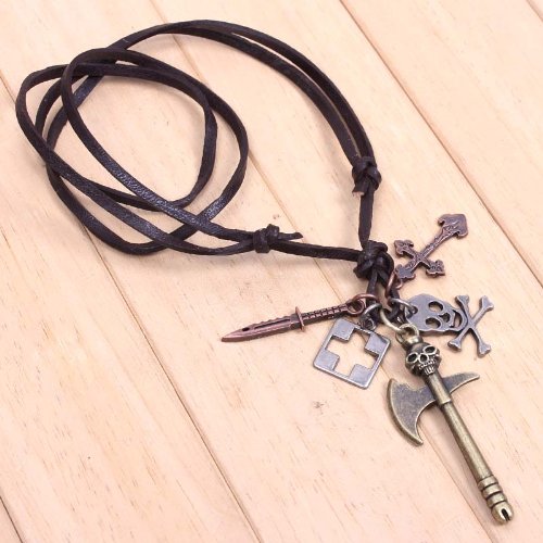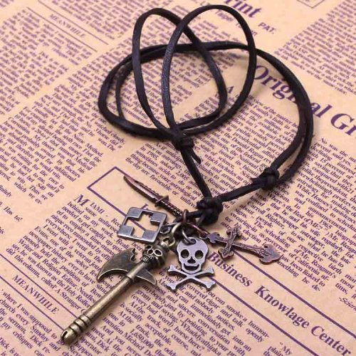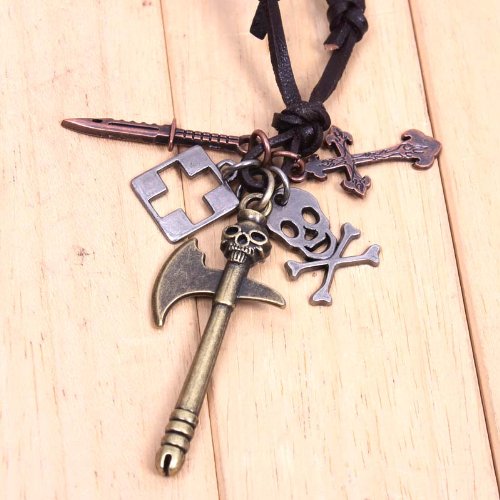 - Title : Modern Fantasy Vintage Axe Skull Sword Cross Bronze Stainless Steel Pendant Necklace