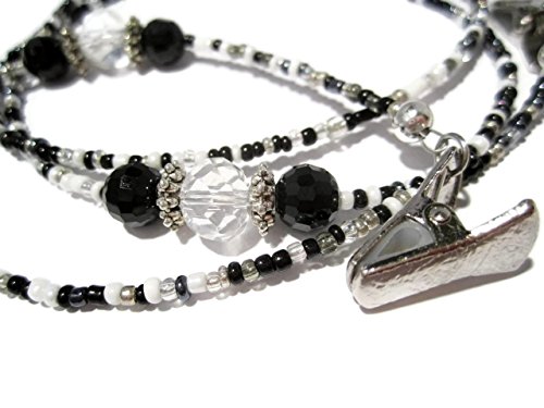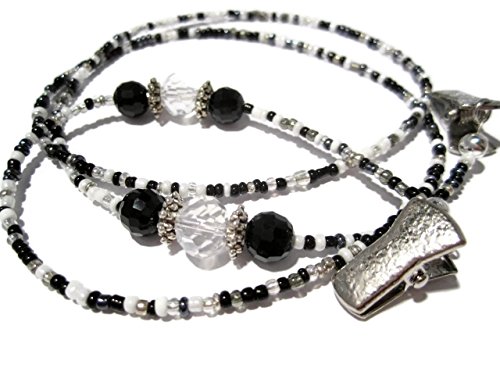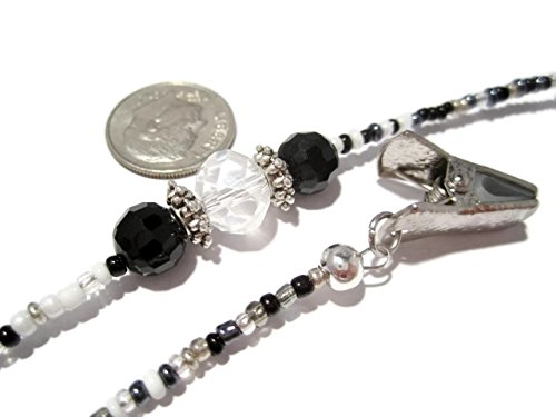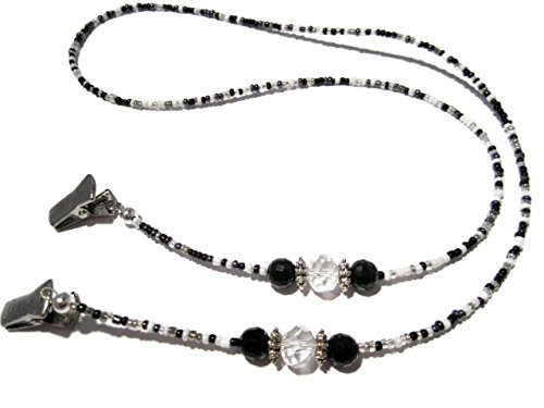 ATLanyards Black, Gray, White and Silver Mix - Beaded Eyeglass Chain With Clips