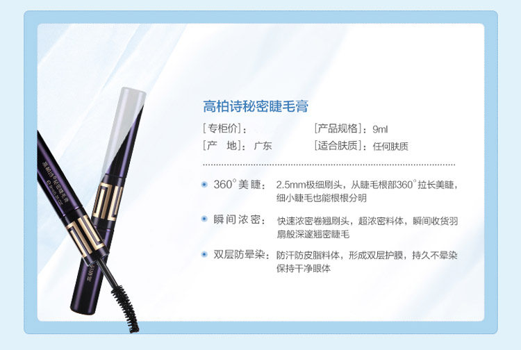 全新秘密睫毛膏,一支融合了极细和浓密两种效果,打造如天生眼部美丽神韵的睫毛!