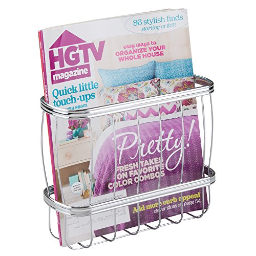 mDesign Bathroom Over the Toilet Tank Magazine and Book Storage Holder - Chrome