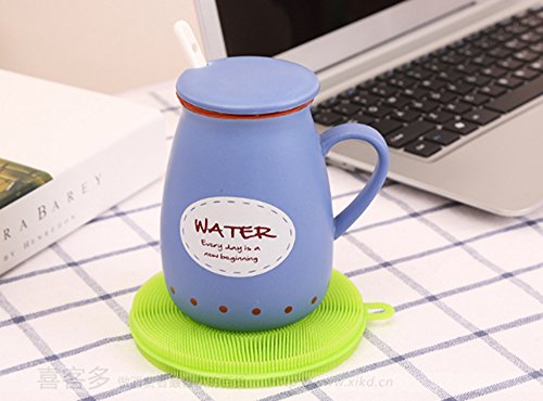 MULTI-PURPOSE KITCHEN HELPER. The scrubber is about 5 inches in diameter and fit in the hand nicely. One side has little brushes and the other has ridges. It can also be used as a coaster and pot holder due to its heat resistant feature.