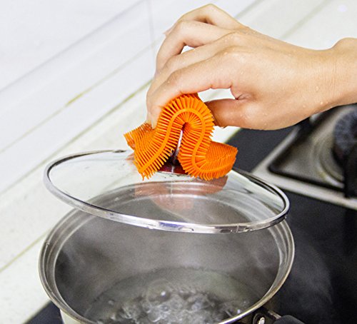 EASY TO CLEAN AND QUICK DRY. The silicone dish scrubbers can rinse clean fairly well and dry throughly. They will be good as new when they get clean and dry, and they can easily be popped in the dishwasher or even boiled to get clean.