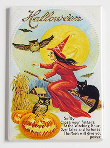 Halloween "Red Witch on a Broom" Fridge Magnet (2.5 x 3.5 inches)