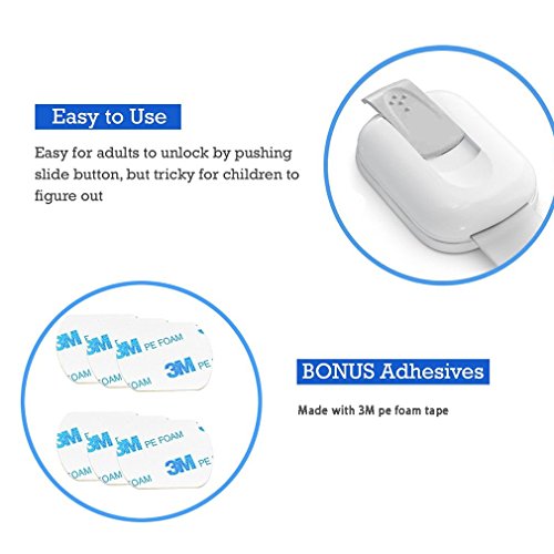-. Title : Child Safety Locks - @ONME - 6 Pack Baby Lock - Uses 3M Adhesive with Adjustable Strap and Latch System - Easy Installation - Safety Baby Latches Ideal for Secures cabinets, Refrigerators, toilet seats, Microwaves, Freezers, Dryers, Dishwashers