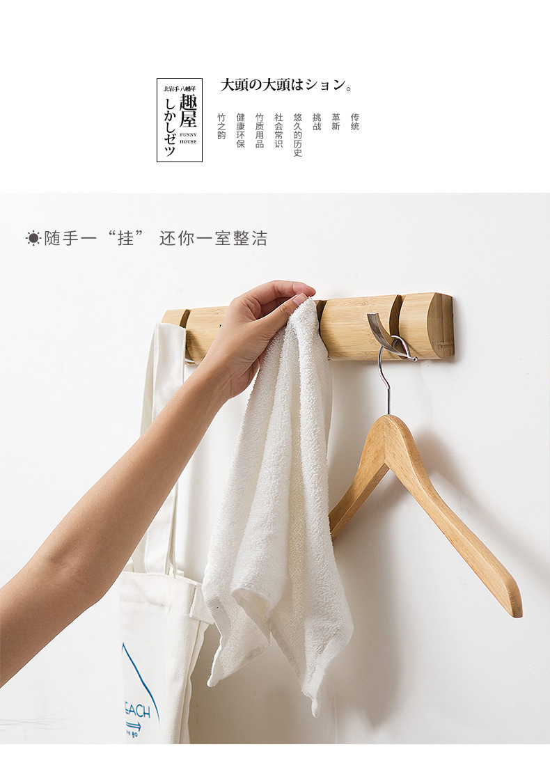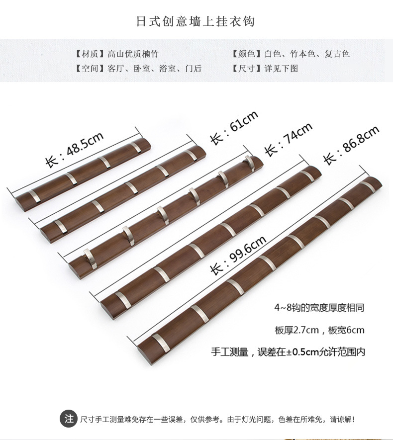 产品信息:本产品为楠竹制造,水性漆喷涂,健康环保,挂钩为锌合金