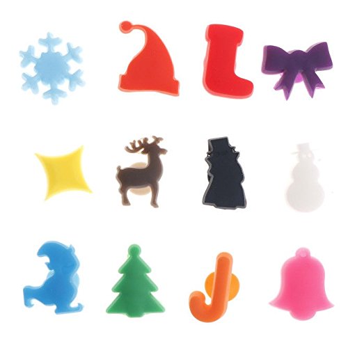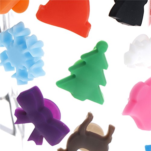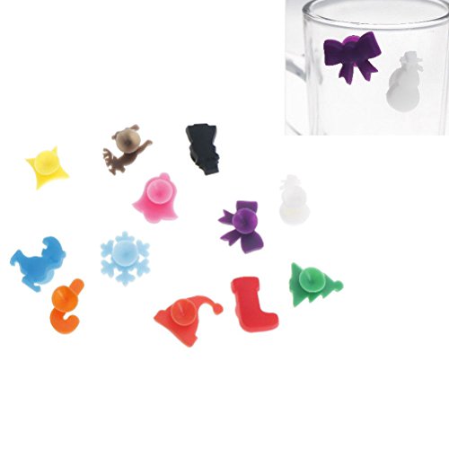 -. Feature : CHRISTMAS THEMED DESIGNS - Each pendant is made of silicone.Each charm features a silver ring and red and golden beads. The full set of 12 designs includes a Christmas wreath, a snowflake,a gift box red and a green one, a Christmas tree, Stocking, a Elk, a glove, a Santa Claus, a candy, a pair bells,a ball / IDEAL GIFT: Makes for an excellent gift exchange idea or Christmas stocking filler gift for that one wine lover friend or family member / CHRISTMAS WINE CHARMS: This set of 12 Wine Charms are for Christmas-themed parties, gatherings, get-togethers and family holiday moments / SUPERIOR QUALITY - This wine marker gift set contains a total of 12 wine charms, allowing you to use them for everyday sipping or when you are hosting friends and family. / EASY USAGE - Attach it to the stem of a glass with the easy-to-hook loop, then pull apart the loop to hook or unlock.